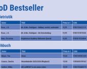 News: Bücher in den Medien – Hexenkalender punktet auf der BoD-Bestsellerliste im November Während die Belletristik-Bestsellerliste des Anbieters BoD nahezu komplett von New Adult und Romance eingenommen ist, ist der einzige Neueinsteiger im Sachbuch in diesem Monat der Hexenkalender für kommendes Jahr von ... Weiterlesen +