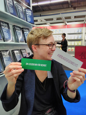 Lisa Mangold: Die ersten Aktionen fanden auf der Leipziger Buchmesse 2016 unter dem Hashtag #verlagegegenrechts statt. Es war ein leicht zu merkender Slogan, der auf der einen Seite eine klare Aussage beinhaltete, aber trotzdem breit genug war, dass sich Menschen und Verlage aus verschiedenen Richtungen damit identifizieren konnten.