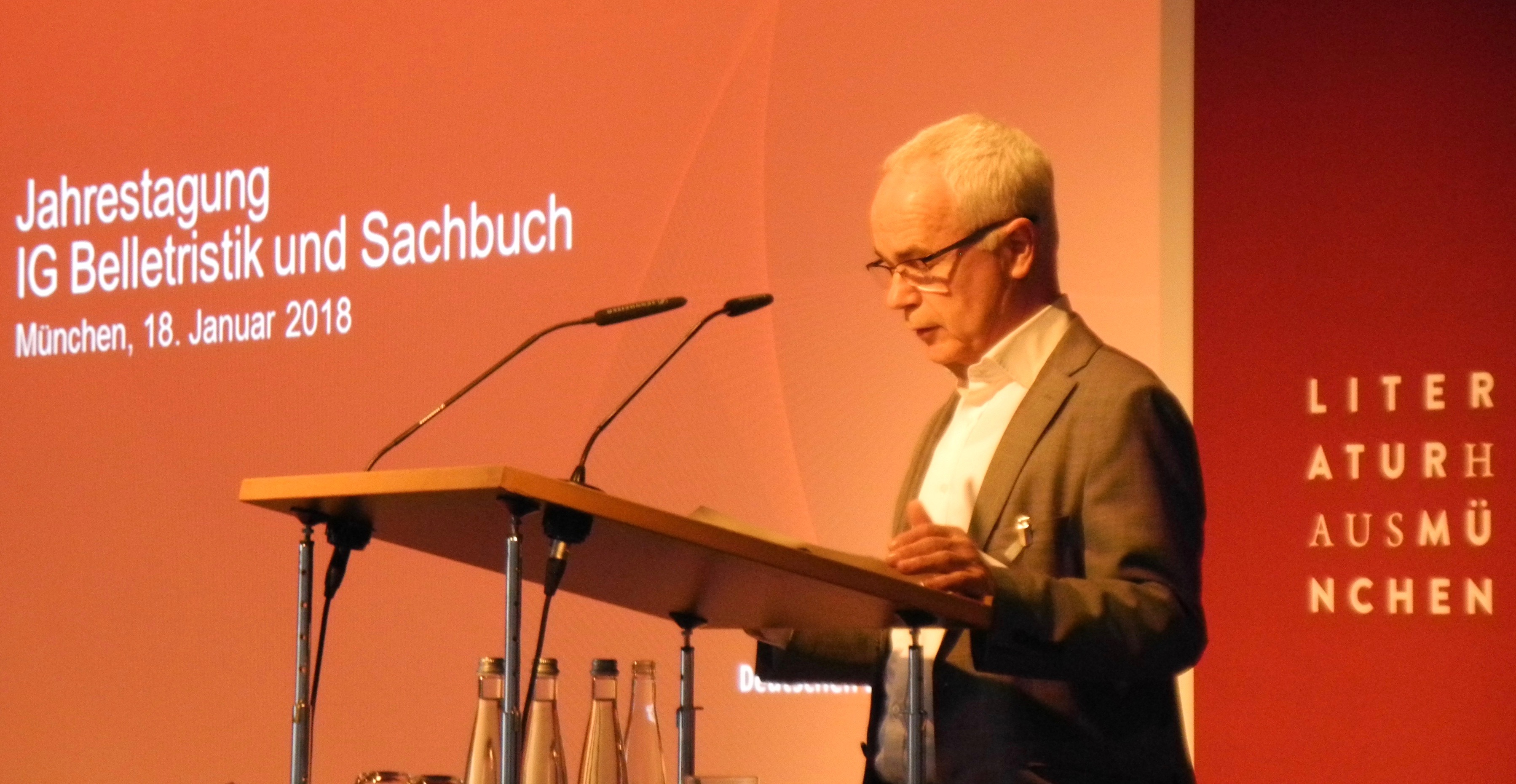 Mit 180 Teilnehmern gut besucht, konnten Annette Beetz (Verlagsgruppe Random House), Felicitas von Lovenberg (Piper) und Andreas Rötzer (Matthes & Seitz) die diesjährige Tagung eröffnen. „Lesen macht glücklich“ zitierte Börsenvereins-Vorsteher Heinrich Riethmüller einen Buchtitel aus dem Piper Verlag, „der Rückblick ins Jahr 2017 eher nicht.“