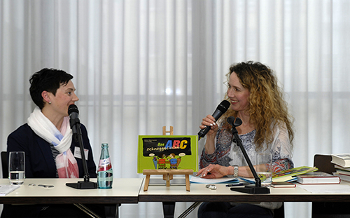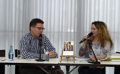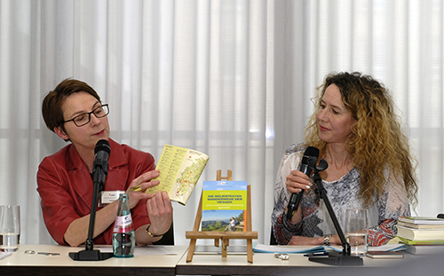 Ariane Wick, Moderatorin beim Hessischen Rundfunk, fragte zunächst Annette Sievers nach dem Ziel der Initiative Schaufenster Hessen. „Wir als kleine Verlage wollten mit unseren Büchern in die Buchhandlungen und suchten nach Möglichkeiten, die beiden Seiten Gewinn bringen“, antwortete Sievers.