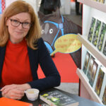 Nur ein paar Tage älter ist jetzt der Sohn von Joëlle Tourlonias, und trotzdem hat sie gerade den vierten Hummel Bommel-Band für arsEdition fertig illustriert, staunt ihre Lektorin Katharina Becker. Hummel Bommel und die Zeit wird er heißen. Am Stand gibt es einen großen Tisch, man könnte fast sagen Altar mit den Hummel Bommel-Büchern, und auf die Illustratorin kommen wir gleich noch mal zurück.