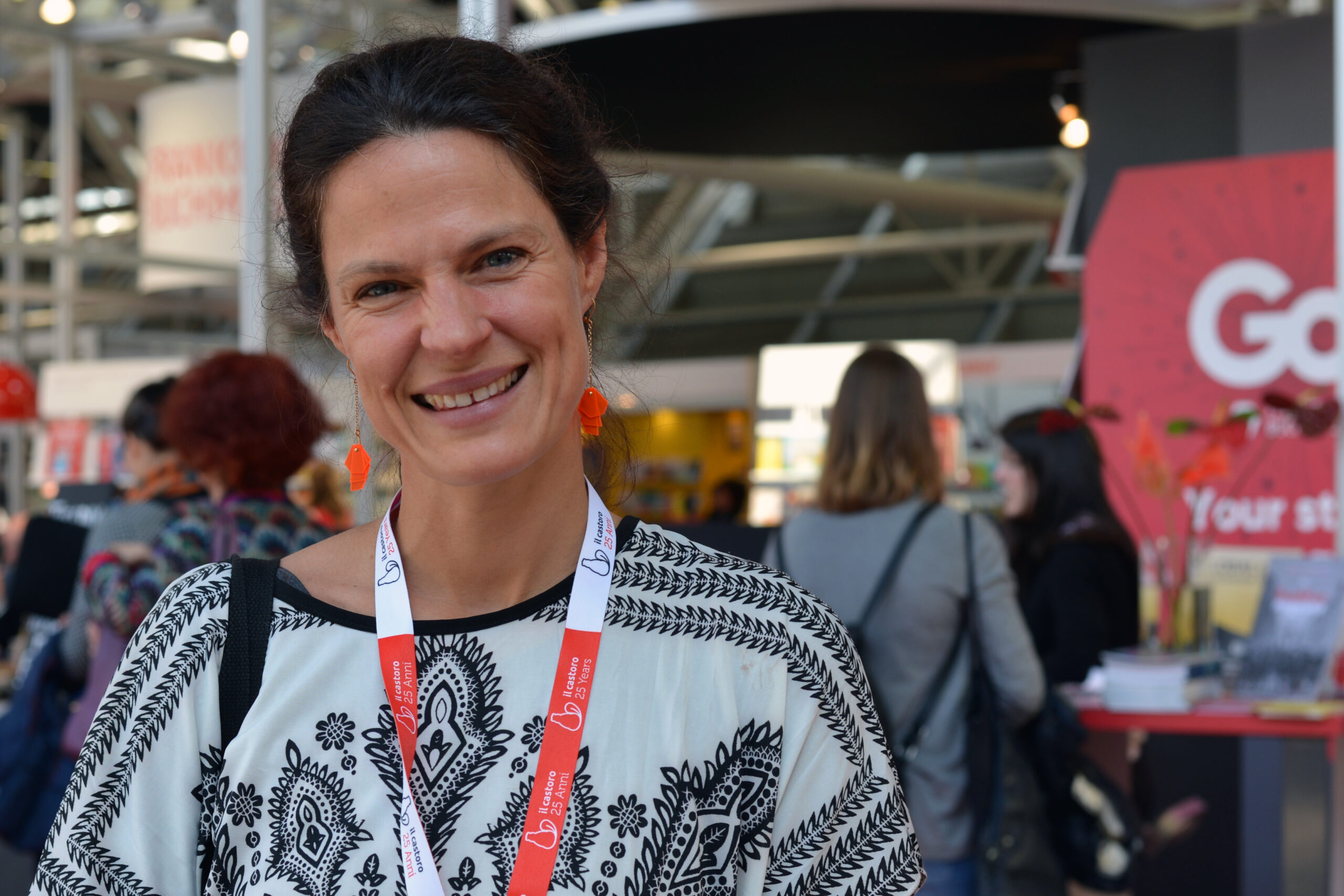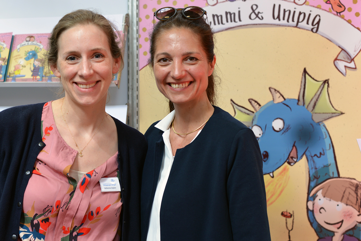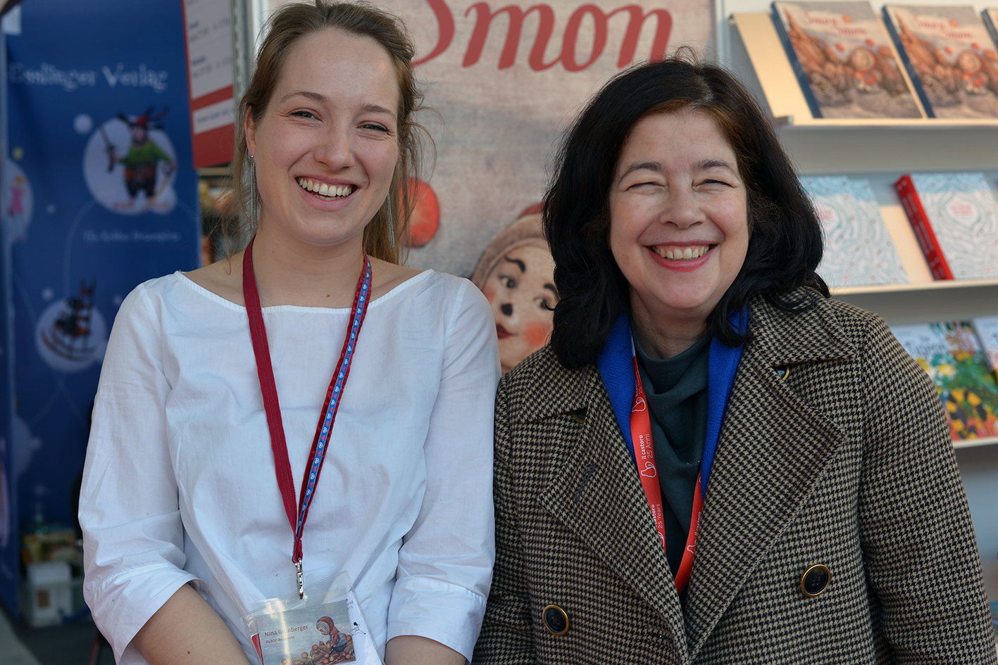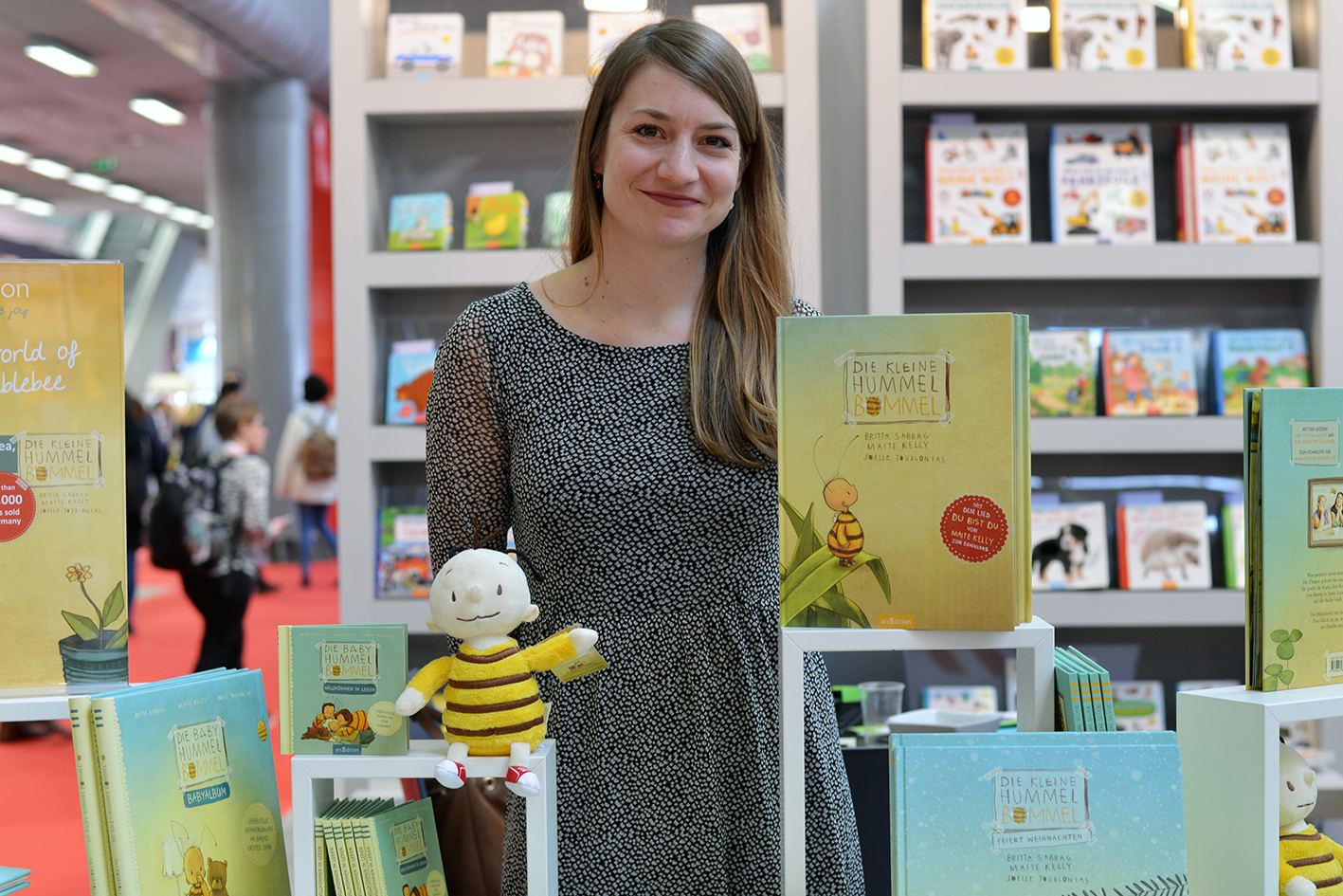 Nur ein paar Tage älter ist jetzt der Sohn von Joëlle Tourlonias, und trotzdem hat sie gerade den vierten Hummel Bommel-Band für arsEdition fertig illustriert, staunt ihre Lektorin Katharina Becker. Hummel Bommel und die Zeit wird er heißen. Am Stand gibt es einen großen Tisch, man könnte fast sagen Altar mit den Hummel Bommel-Büchern, und auf die Illustratorin kommen wir gleich noch mal zurück.
