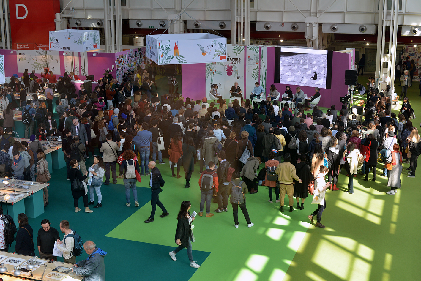 Es sind die Illustratoren, die die Kinderbuchmesse in Bologna so bereichern. Zahlreiche Studierende wie auch erfahrene Künstler reisen nach Italien, sei es, um ihre Mappen zu präsentieren, Kollegen zu treffen oder/und die internationalen Produktionen zu sichten. Die schöne Stadt inspiriert auch und besonders außerhalb der Messehallen im historischen Zentrum, wo man nicht selten Menschen mit Skizzenheften trifft. Übrigens hat die Messe einen neuen optischen Auftritt erhalten, der von der 23-jährigen Pariser Illustratorin Chloé Alméras gestaltet wurde, die dafür aus der letztjährigen Illustratoren-Ausstellung ausgewählt wurde: floral, luftig, einladend. Die diesjährige Schau im Zentrum der Messe präsentiert wieder Talente aus aller Welt, aus Deutschland sind diesmal Franziska Blinde, David Czinczoll, Catherine Kuhlmann (mit Bildern aus Der Club der Mutigen, Bohem Press) und Alexandra Rügler vertreten.