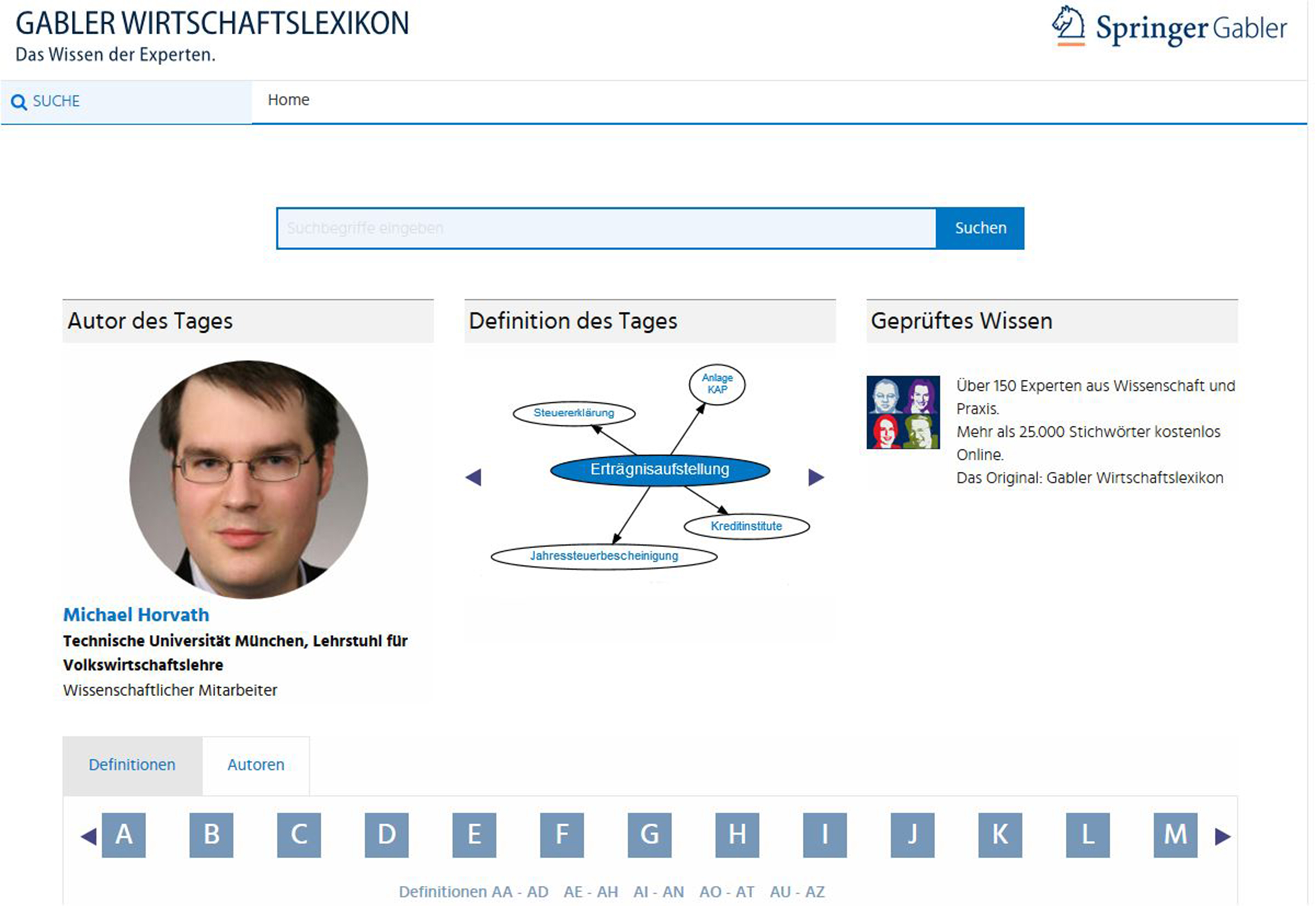Der neue Auftritt unter wirtschaftslexikon.gabler.de orientiert sich nun optisch an unseren großen Plattformen SpringerLink und SpringerProfessional.