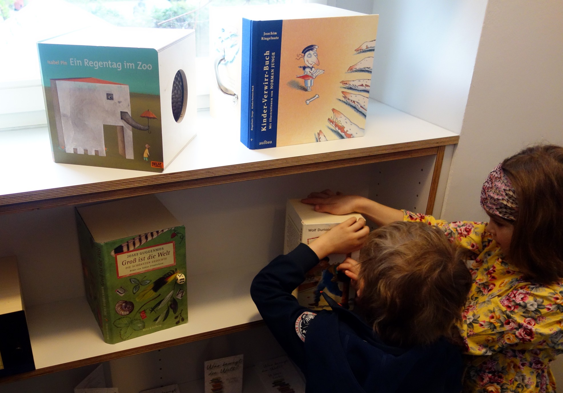 Die Ausstellung, die bis zum 30 Juni zu sehen ist und anschließend durch Öffentliche Bibliotheken Berlins wandert, besteht aus 25 Buchobjekten des Künstler Ladislav Zajak. „Die 25 Kästen, die Äußeres und Inneres der 25 Bücher in Verbindung setzen, laden zur Wahrnehmung mit allen Sinnen ein“, schreibt Annette Wostrak, die Projektleiterin des Jubiläumsprogramms, im Programmheft. Schon bei dem Fest am Samstag waren die außergewöhnlichen Objekte zum Anfassen stets umlagert. Und die Bücher, darunter Kai aus der Kiste von Wolf Durian, Ente, Tod und Tulpe von Wolf Erlbruch, Die Lisa von Klaus Kordon und Krasshüpfer von Simon van der Geest brachten Jung und Alt ins Gespräch. Das Jubiläumsprogramm endet am 29. Juni mit einer Fachkonferenz, die sich mit dem künstlerischen Potential von Kinder- und Jugendliteratur befasst.