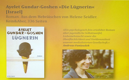Juror Andreas Fanizadeh würdigte Lügnerin von Ayelet Gundar-Goshen aus Israel. Die Übersetzung verantwortet Helene Seidler, Kein & Aber Zürich publizierte den Roman. Auch bei Gundar-Goshen ist es das dritte ins Deutsche übersetzte Buch. Bittoun stellte in der vorgetragenen Passage eine 17-Jährige vor, die während der Ferien in einer Eisdiele in Tel Aviv jobbt. Es ist die Geschichte eines Teenagers, der an zu wenig Sichtbarkeit und mangelnder Anerkennung leidet. Die Eisverkäuferin wird vielleicht zum Vergewaltigungsopfer. Es ist auch die Geschichte über ein Vorstadtmädchen und die digitale, schnelllebige Welt. „Dabei ist die israelische Gesellschaft mehr als eine folkloristische Kulisse“, sagte Fanizadeh.