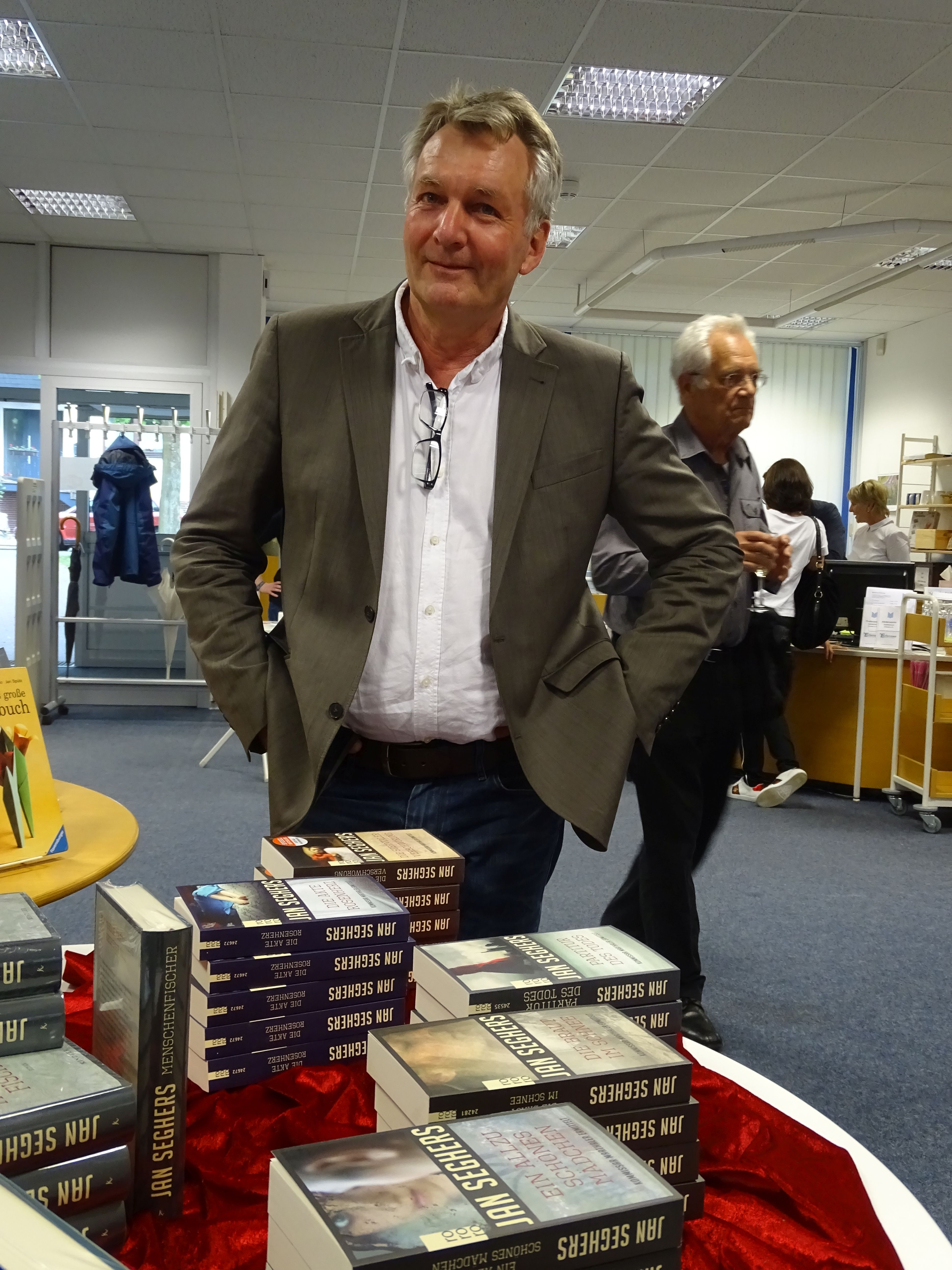 Matthias Altenburg fand als Lektor und Herausgeber in unsere Branche, wurde als Journalist bekannt und wagte sich dann irgendwann an seinen ersten Roman. Er sagt, er „konnte nicht verhindern, dass es ein Krimi wurde, auch wenn es ihm noch nicht sonderlich behagte“ und legte sich sicherheitshalber ein Pseudonym zu, um „einen inneren Abstand zu seinen sachtextuellen Wurzeln zu finden, aber er fand viel mehr“ – so kam Jan Seghers in die Welt, und mit ihm seine besondere Mischung aus Zeitbezug, tatsächlichen Fällen, Milieustudien und Schreibtalent: Von Ein allzu schönes Mädchen aus dem Jahr 2006 bis aktuell zum Menschenfischer (Rowohlt) liegen sechs Bände vor, die zwar noch nicht an Kluftingers Beliebtheit heranreichen – aber das will Seghers auch gar nicht. Sein Kommissar Marthaler kommt zwar aus Frankfurt, aber Regiokrimis sind das nicht. Anlass für Fragen an den Autor: