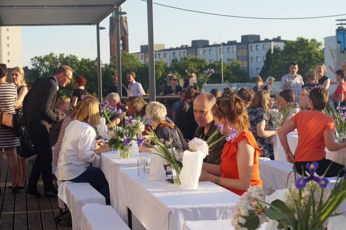 Bei BBQ, kühlen Getränken und anregenden Gesprächen ließen die Gäste den herrlichen Abend auf der Dachterrasse des Aufbau Hauses ausklingen.