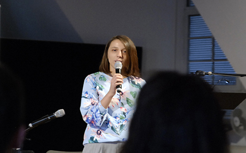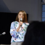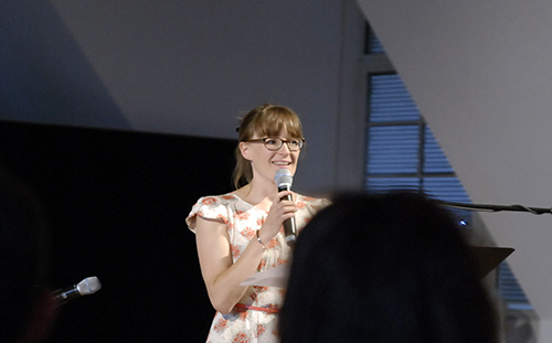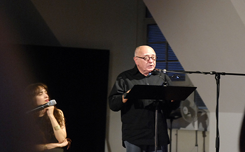 Aino Kelle vom Kulturamt der Stadt Frankfurt, Organisator des Festivals literaTurm, begrüßte die Gäste, Nino Nadibaidze, Koordinatorin des Literaturprogramms beim Ehrengastauftritt Georgiens zur kommenden Frankfurter Buchmesse, richtete ebenfalls einige Worte an die vielen Besucher.