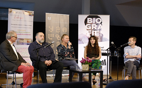 Doch wie empfinden georgische Autoren ihr Land? „Alle drei sind in ihrer Heimat Stars“, erklärte Akrap. Nana Ekvtimishvili, 1978 in Tbilisi geboren, studierte Philosophie in ihrer Heimatstadt und Dramaturgie an der Filmhochschule in Potsdam-Babelsberg. Seit 1999 veröffentlicht sie, wurde für ihre Drehbücher, die sie auch gemeinsam mit ihrem Mann Simon Groß schreibt, mehrfach ausgezeichnet. 2015 veröffentlichte sie den Roman Das Birnenfeld, im August wird das Buch bei Suhrkamp auf Deutsch erscheinen.