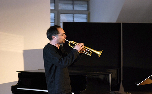 Eröffnet wurde der Abend vom Trompeter Sava Stoianov, Ensemble Modern. Er war noch mehrfach, später auch mit dem Hornisten Saar Berger, zu hören.