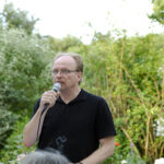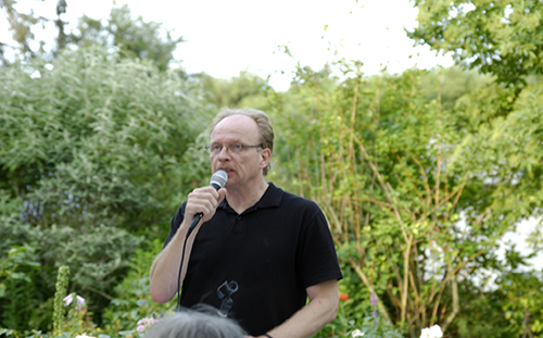Juror Ulrich Sonnenschein wechselte vom Grill an den Stehtisch und las eine Passage von Josef Winkler aus dem Buch Friedhof der bitteren Orangen. Winkler, Stadtschreiber 1994/95, war gerne in Bergen und wäre wohl sogar dort geblieben. Sein Sohn wurde im Stadtschreiberhaus geboren.
