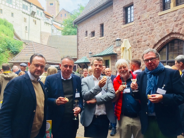 Beste Stimmung schon am ersten Abend auf der Wartburg in Eisenach: Piper-Autor Alexander von Schönburg, Klett-Cotta Verriebschef Ralf Tornow, Ratgeber-Experte Folkert Roggenkamp und LG-Buch Aufsichtsräte Rainer Gollenstede und Ulrich Ohm (v.l.)