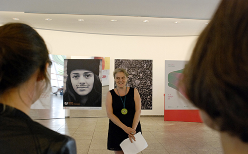 Grit Weber, stellvertretende Direktorin des Museums und Jurymitglied, begrüßte die Gäste: „292 Entwürfe aus 20 Hochschulen aus Deutschland und der Schweiz wurden im Wettbewerb zur Gestaltung eines Willkommensplakats für den Buchmesse-Ehrengast Georgien eingereicht. Seit 2011 präsentiert das Museum Angewandte Kunst die besten Plakate. Die Ausstellung passt gut zu uns.“