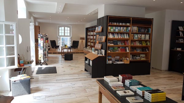 Das bisherige und “ erfolgreiche Konzept mit einer bewussten Auswahl und wenig Warendruck“ (siehe Fotos) wird trotz der größeren Fläche beibehalten, aber um einige wesentliche Elemente erweitertet: „Wir haben jetzt eine eigenen Bühne für Veranstaltungen integriert, ebenso eine kleine Kaffeebar und können auf dieser Fläche endlich genug Sitzgelegenheiten bieten“ freut sich Patrick Musial.