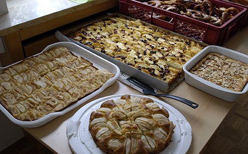 Der Apfelkuchen stand bereit, die Besucher ließen sich nicht lange bitten und griffen zu: lecker. Wie auch im Buch Das siebte Kreuz.