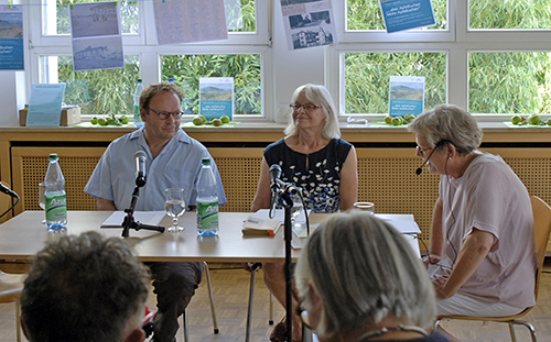 Beate Großmann-Hofmann, Fachdienstleitung Kultur in Königstein, informierte über Romanhintergründe und berichtete Biografisches der 1900 als Netty Reiling geborenen Autorin: „Im damaligen Grand Hotel Königstein logierten die Reilings mit Tochter mehrfach. Später kam die verheiratete Netty Radvanyi mit ihrer Familie ebenfalls nach Königstein und wohnte in der Villa Marnet.“ Schon war man wieder bei Franz Marnet, der zweiten Hauptperson des Buches. Velte las eine Passage, Marnet war mit dem Rad in Höchst in der Fabrik angekommen. „Viele, auch mein Großvater, haben in Höchst gearbeitet“, sagte anschließend Angelika Fuchs, die ausgesucht hatte, welche Auszüge aus dem Siebten Kreuz an diesem Tag vorgetragen wurden.
