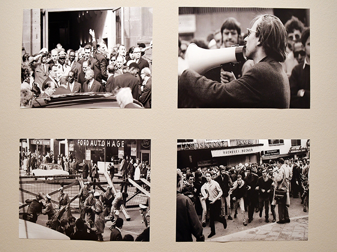 Zu sehen sind in verschiedenen Räumen Fotos von 1966 bis 1973. „Dabei sind die Studentenunruhen 1968 in Paris mit der Barrikaden-Nacht sicher der Höhepunkt“, urteilte Kuratorin Viola Hildebrand-Schat, Kunstgeschichtliches Institut der Goethe-Universität.