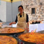 Letztere hatte gemeinsam mit Museumsdirektorin Pauline Liesen und Julia Neuhaus das Konzept des Workshops entwickelt – und gemeinsam mit ihrem Mann, dem Krimi-Autor Ulrich Brandt, am Freitag Abend im Hof von Burg Wissem eine köstliche Paella im Peretti-Stil für die Workshop-Teilnehmer zubereitet. Musikalisch abgerundet wurde das Programm stilsicher von Sophia Martineck an der Akkordzither und Henning Wagenbreth an der Mandoline.