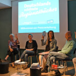 Jürgen Kron, Sprecher der IG Regionalia mit derzeit etwa 80 Mitgliedern, begrüßte die Gäste: „Wir haben ein breites Spektrum an Büchern erhalten. Viele Verlage sind oft seit Jahrzehnten mit ihrer Region verwurzelt.“ Er lobte die Kooperation mit der Stiftung Buchkunst und stimmte auf die letzte Runde der Jury ein, die sich aus fünf Experten verschiedener Bereiche zusammensetzt. Jeder Juror stellte anschließend einen Titel von den fünf Finalisten vor.