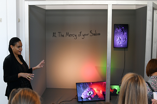 Analoge und digitale Techniken vereint auch Tamar Chaduneli, die seit 2017 an der Städelschule studiert und mehrere Arbeiten mit ungewöhnlichem Materialmix präsentiert.