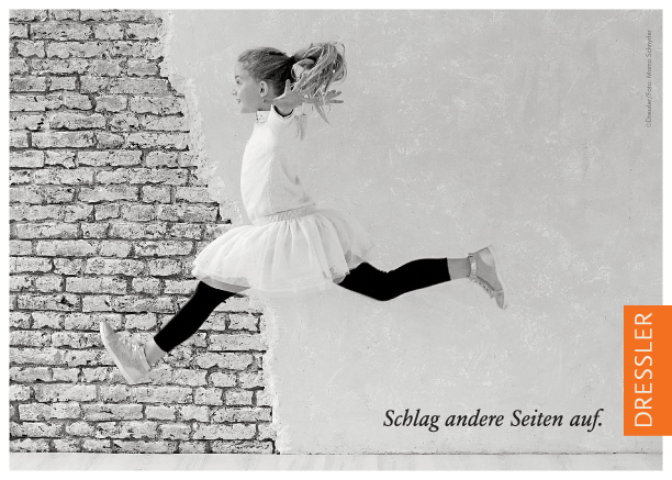 Dressler wiederum soll unter dem Claim „Schlag neue Seiten auf“ Bücher veröffentlichen, „die sich inhaltlich, sprachlich und optisch vom Mainstream abheben“. Das Dressler-Logo wird als reiner Schriftzug auf einem farblich abgesetzten Rahmen umgesetzt, das Bildelement des Bären entfällt.
