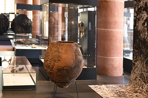 Etwa 1000 Jahre später wurde ein hölzerner Wagen einem Hügelgrab beigeben. Mit rund 1,50 großen Rädern ist er das größte Exponat der Ausstellung, die bis zum 10. Februar 2019 zu sehen ist.