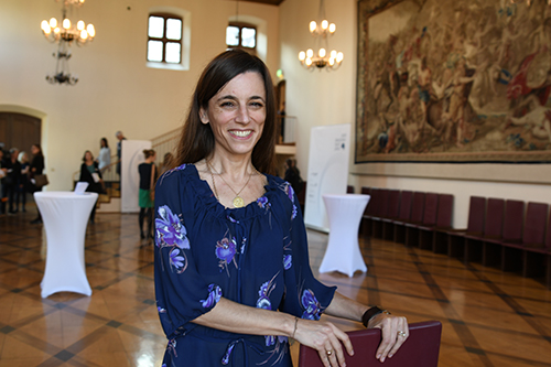 Cécile Schortmann moderierte die Veranstaltung am Montagabend in Frankfurts repräsentativstem Saal, 52 gekrönte Häupter schauten von den Wänden aus zu.
