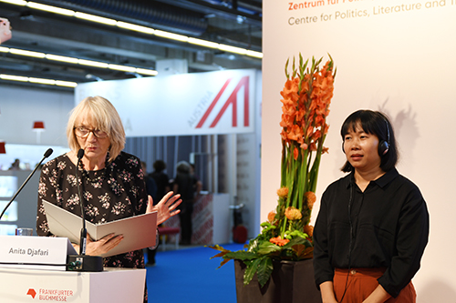 Nach der Verleihung des mit 3000 Euro dotierten LiBeraturpreises – die Urkunde verlas und übergab Litprom-Geschäftsführerin Anita Djafari – bedankte sich die Autorin. „Ein gutes Buch liest man wie im Fieber“, sagte sie. Als sie mit dem Schreiben begann habe sie zunächst gezweifelt, ob ihr solche Bücher gelingen würden. Doch innere Stimmen bedrängten sie, die Geschichten zu erzählen. Also habe sie nicht aufgegeben. „Es gibt zum Glück noch viele Geschichten. Ich freue mich sehr, dass einige nun in Deutschland angekommen sind und danke meinen Übersetzern“, sagte die Preisträgerin. Die Anerkennung gelte auch ihnen und dem Verlag.