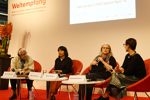 Die Laudatio hielt Katharina Borchardt. Die Vietnamesin Nguyen Ngoc Tu hatte mit ihrem Erzählband Endlose Felder, 2017 im Mitteldeutschen Verlag erschienen, die meisten Stimmen erhalten. Günter Giesenfeld und Marianne Ngo übersetzten das Buch ins Deutsche.