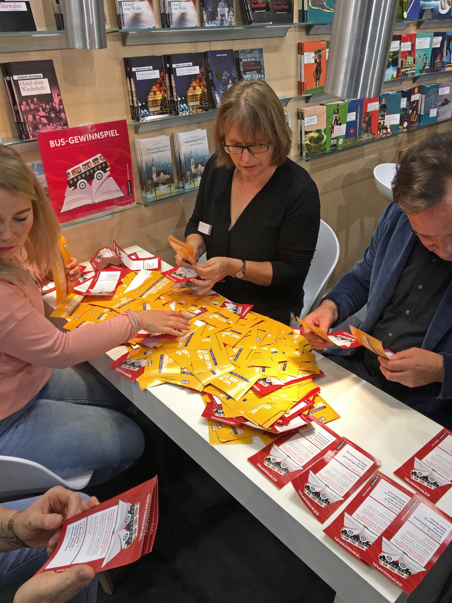 Die Busgruppe kam mit den meisten Kunden an den Stand des Verlags und setzte sich damit gegen 65 teilnehmende Buchhandlungen durch.