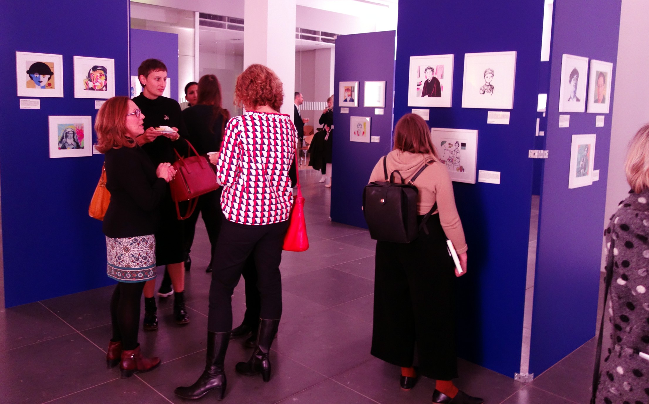 Die erläuternden Texte stammen von Nicola Stuart. „Ich habe beim Gegenlesen viel gelernt“, erzählte Edmund Jacoby, der gestern Abend zahlreiche der beteiligten Illustratorinnen begrüßen konnte. Auch Margarete Stokowski, die jüngste der porträtierten Frauen, war anwesend und sprach mit Katarina Barley über Frauenemanzipation heute.