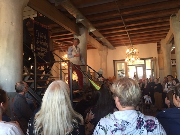 Am Auto schon empfing ihn ein Leierkasten und die ersten Kollegen sangen „Happy birthday“. Und es ging weiter: Im Verlag selber begrüßte ihn ein weiterer Chor mit „I will follow you“ und plötzlich tauchte die nächste Sängerschar mit „He’s a jolly good fellow” auf.
