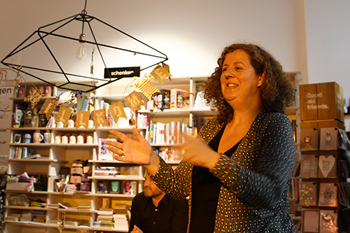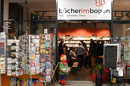 Am 19. November 2016 öffnete Bücher im Bogen auf rund 60 Quadratmetern in den Arkaden am Gravensteiner Platz im Neubaugebiet in Preungesheim. „Wir haben eine tolle Resonanz, gerade bei Familien, und werden am Wochenende erstmals auch die Kinderbuchmesse Kalbach unterstützen“, sagte Schulze.