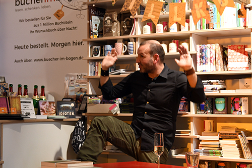 Buchhändlerin Marion Schulze und ihr Team hatten den Abend gut vorbereitet, die Lesung im Rahmen der Woche der unabhängigen Buchhandlungen war ausverkauft. Den Tipp, Jörg Becker einzuladen, hatten die umtriebigen Buchhändlerinnen von Moderator Tim Frühling, der bereits zweimal zu Gast war.