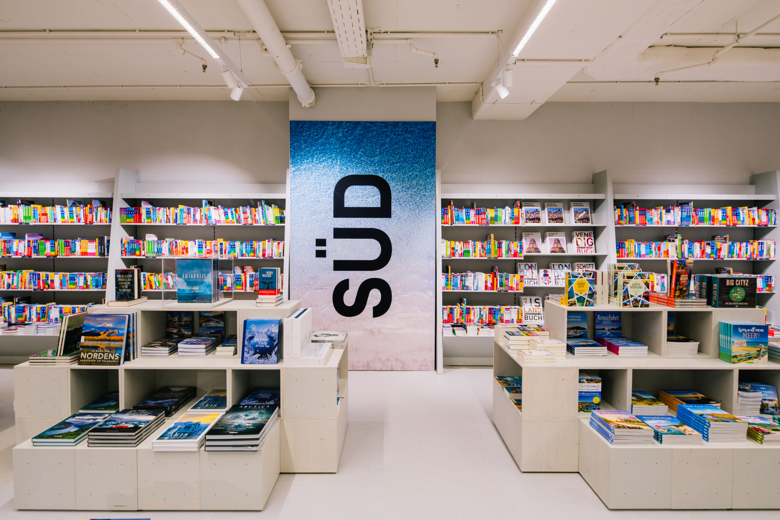 - „Die erste Welt ,abtauchen‘ etwa soll jene Kunden ansprechen, die lesen, weil sie sich fern ihrer eigenen Realität in fiktive Welten entführen lassen wollen. Sie lesen Romane, die unterhalten, Krimis, Fantasy, Comics oder Manga. Auch die Jugendliteratur findet hier ihren Platz, die etwa mit einer Instagram-Bühne ausgestattet wurde.“