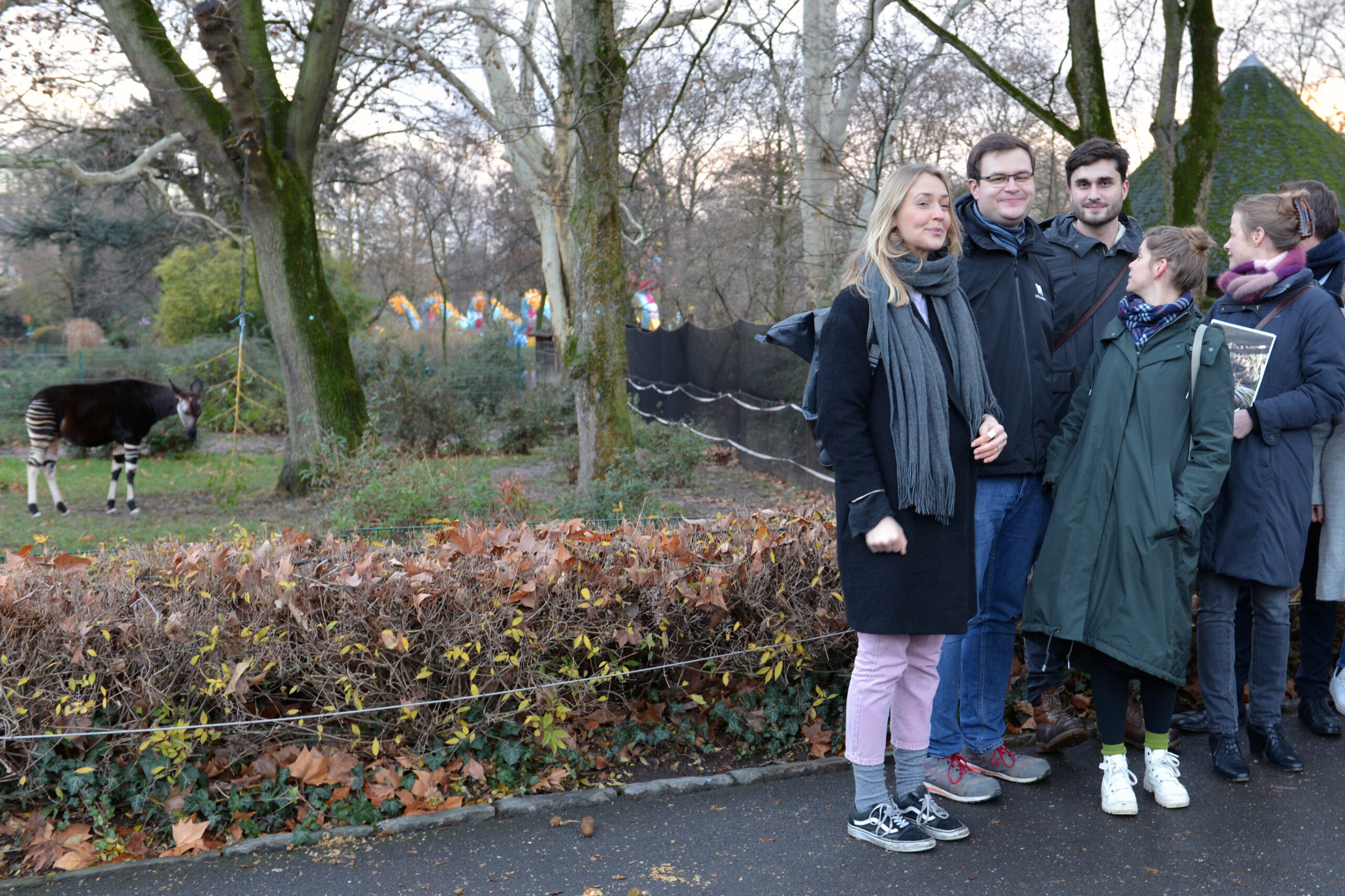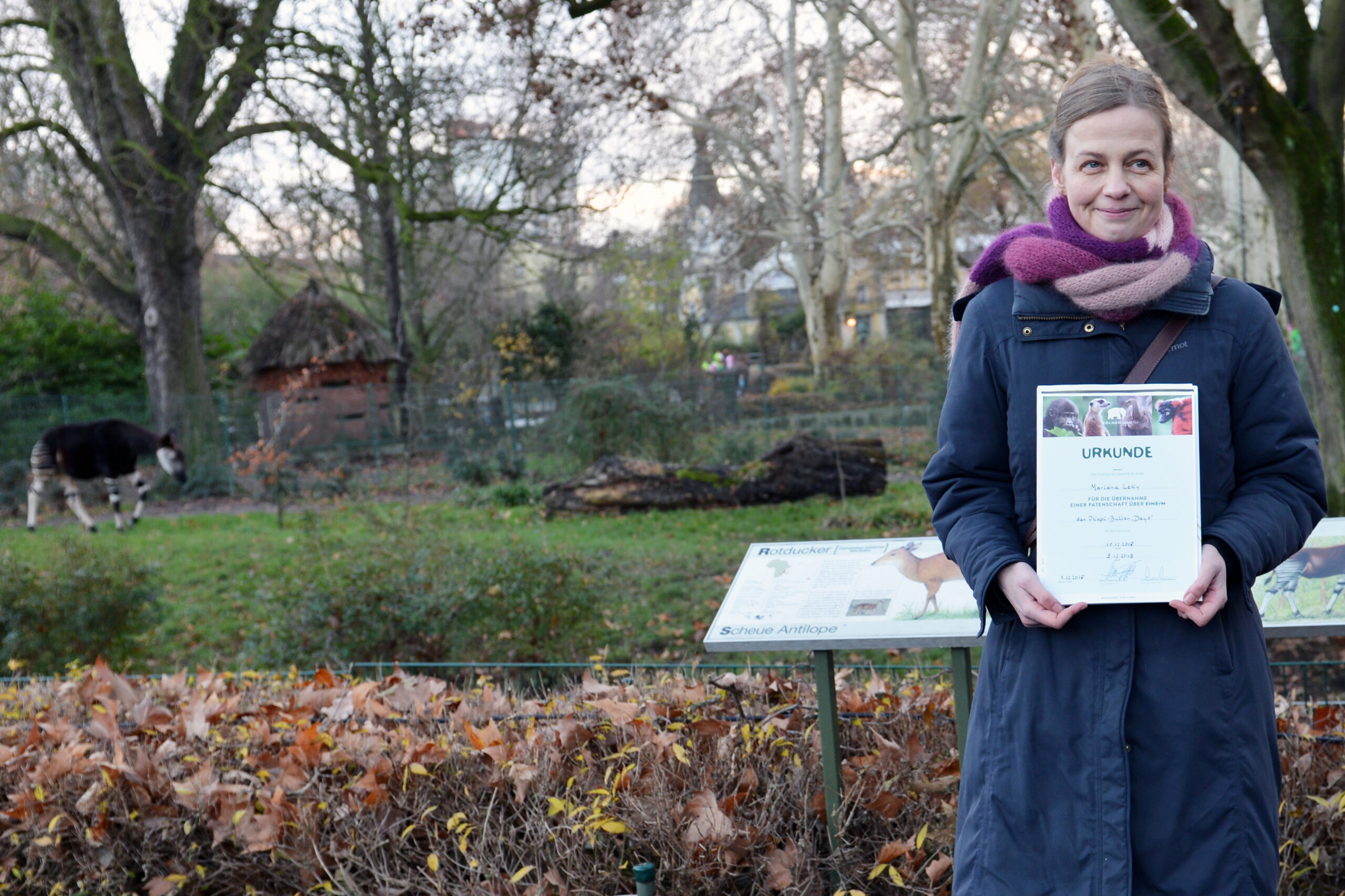 „Was für eine schöne Idee“, freute sich eine gerührte Mariana Leky, die mit ihrem Okapi-Buch bereits zahlreiche Lesungen absolviert hat. Jetzt hat die gebürtige Kölnerin einen zusätzlichen Anlass, dieses besondere Tier daheim zu bestaunen, über das sie schrieb: „Das Okapi ist ein abwegiges Tier, […] und es sieht vollkommen zusammenhangslos aus mit seinen Zebraunterschenkeln, seinen Tapirhüften, seinem giraffenhaft geformten rostroten Leib, seinen Rehaugen und Mausohren. […] Es ist das letzte große Säugetier, das der Mensch entdeckt hat; das glaubt er jedenfalls. Vermutlich stimmt das auch, denn nach einem Okapi kann eigentlich nichts mehr kommen. Wahrscheinlich hat schon sehr viel früher einmal jemand ein Okapi inoffiziell entdeckt, aber vielleicht hat er beim Anblick des Okapis geglaubt, er träume oder habe den Verstand verloren, weil ein Okapi, besonders ein plötzliches und unerwartetes, absolut zusammengeträumt wirkt.“
