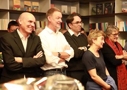 Rafik Schami und Michael Wolffsohn schlossen sich als weitere Festredner an: Rafik Schami erzählte von seiner legendären ersten Begegnung mit Andrea Wörle, die ihn auf der Suche nach einem deutschen Verlag tatkräftig unterstützte: „Wir geben Deinen Texten ein Dach über dem Kopf, damit sie gut überwintern.“