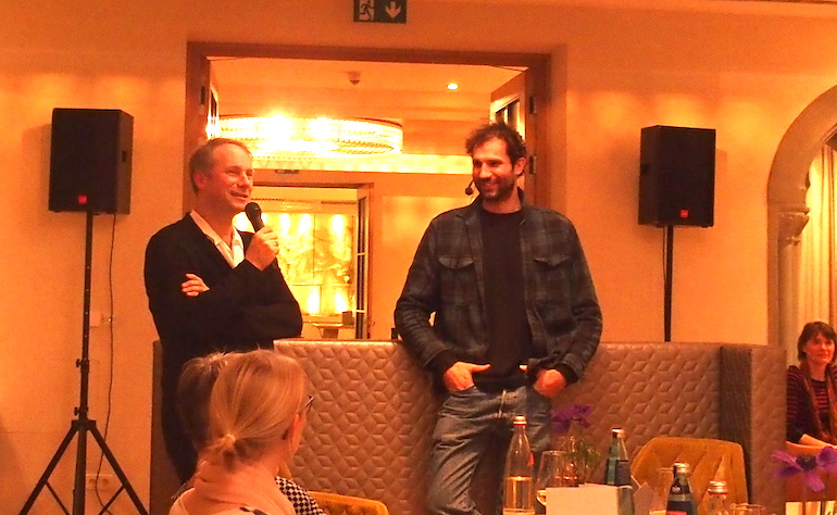 Takis Würger hat sich mittlerweile unter die Gäste gemischt, die er vor allem aufgrund seiner körperlichen Größe überragt. Ansonsten wirkt er, als sei er gerade mal eben zufällig zum gemeinsamen Essen unter Freunden gelandet und berichtet freimütig über die Wellen, die sein Buch seit wenigen Wochen schlägt. Er bemerkt die „ungeheure, verblüffende Härte der Rezensionen“ einerseits und die „Riesen-Unterstützung der Leser und Buchhändler“ andererseits. Die beschriebene Diskrepanz äußere sich in Fragen und Kommentaren. Als Kostprobe zitiert Würger die Mitarbeiterin eines Verlages: „Ich habe dieses Buch geliebt! Bin ich deshalb dumm?“