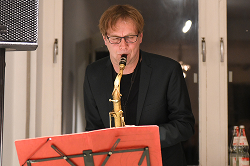 Für die musikalische Umrahmung des Abends war Stephan Völker am Saxophon zuständig, Monika Steinkopf hatte den Büchertisch übernommen.
