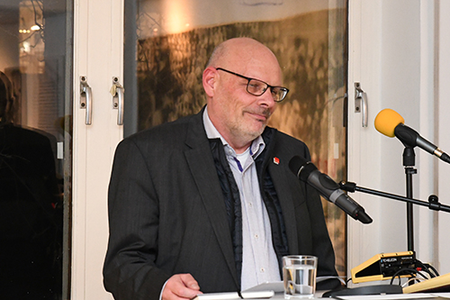 Jürgen Bothner ging auf die Verbindung zwischen Lyrik und der Gewerkschaft ver.di ein: „Vor einer Woche wurde in Augsburg das 50-jährige Bestehen des Verbandes deutscher Schriftstellerinnen und Schriftsteller (VS) gefeiert. Schon immer hingen Schreiben und Politik zusammen. Das Werk von Ulrike Almut Sandig passt gut zu den Zielen der Gewerkschaft. Ihre Ballade von der Abschaffung der Nacht hat mich überzeugt.“