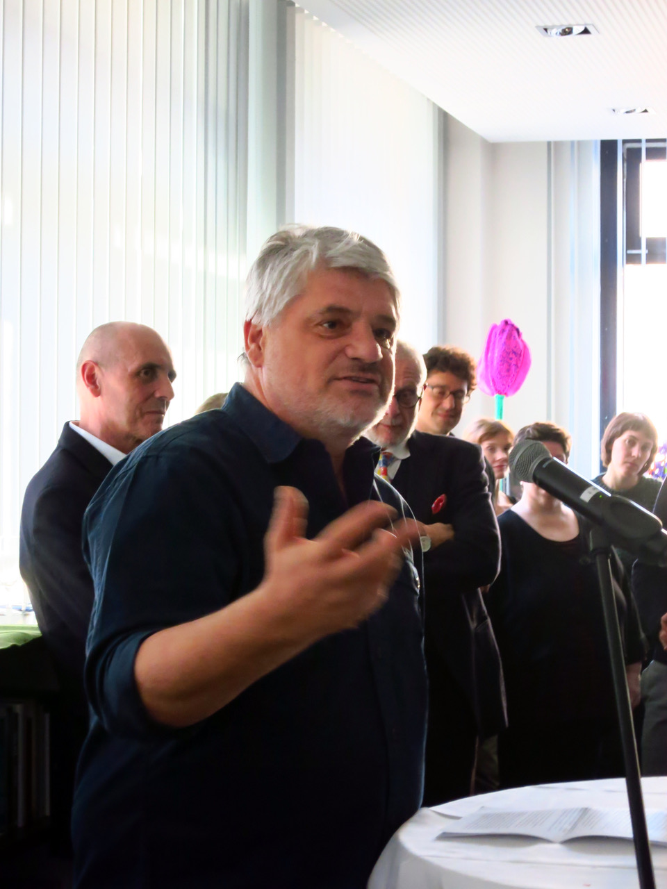 Gekommen waren Gesellschafter des dtv-Verlages, Autorinnen und Autoren, die Mitarbeiter und Verlagskollegen. Gesichtet haben wir u.a. Rudolf FranklMichael Krüger, Jonathan Beck, Jo Lendle, Ursula BenderKlaus Beckschulte, Wolfgang Beck, und seinen Bruder Hans, Hans Pleschinski, Lilo und Klaus G. Saur und Robert Wildgruber, die ihre Geburtstags-Glückwünsche überbrachten.