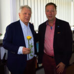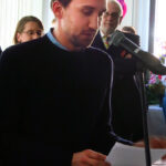 Stephan Joß gratuliert Claudia Baumhöver, rechts applaudiert Jo Lendle