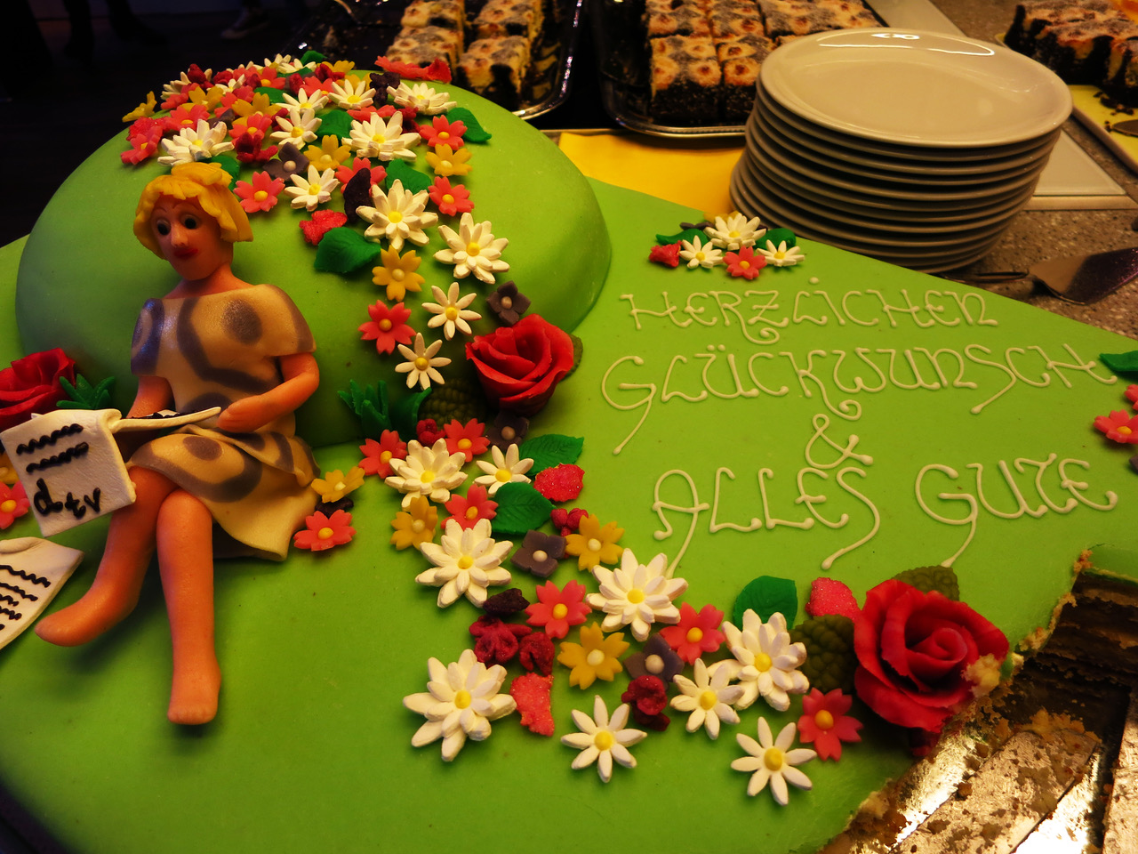 Die Geburtstagtorte mit der Verlegerin aus Marzipan