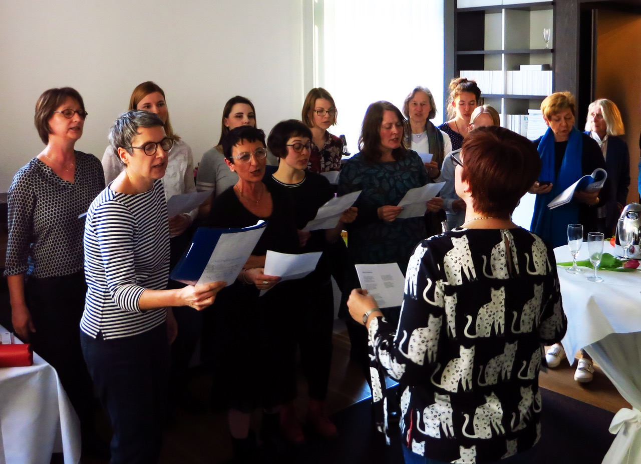„Danke, niemand hat die Zahl genannt!“ Claudia Baumhöver war erleichtert. Ihre erste Intuition sei gewesen “einfach weg, keine Feier und den Tag aus der Ferne vergehen lassen“. Aber der Verlag wollte den runden Geburtstag seiner Verlegerin feiern. Ihre Assistentin, Karin Kirmaier, machte unumstößlich klar: „Aber der Chor übt doch schon!“ Es gab also keine Chance mehr auf eine Widerrede, auf ein Entkommen oder ein sich heimliches Drücken.