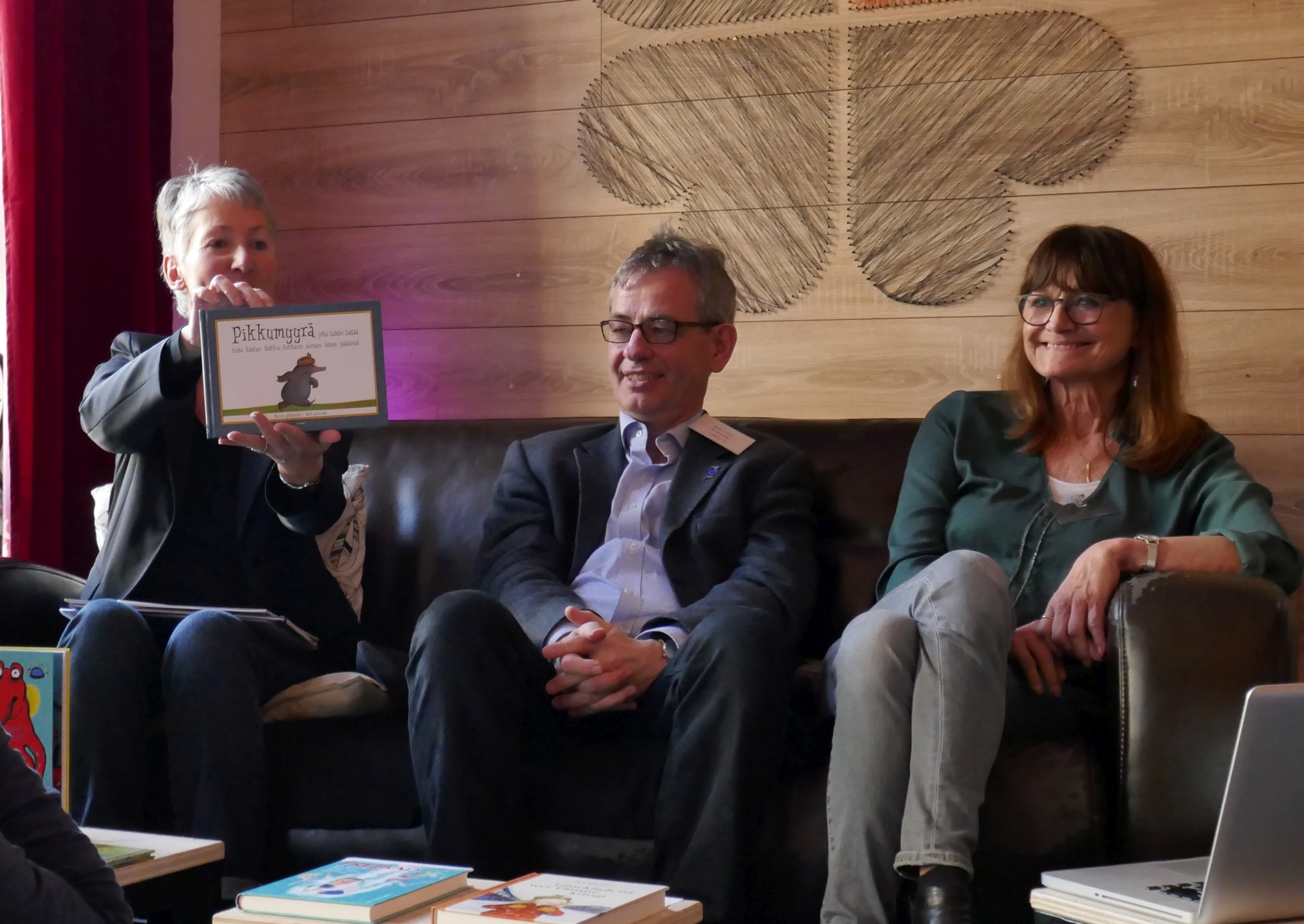 Barbara Kindermann präsentierte – noch als work in progress – Shakespeares Sturm, ein Stoff, der ihr die Idee zur Verlagsgründung vor exakt 25 Jahren gegeben hatte. Monika Bilstein, die mit „30 Jahren Maulwurf“ aufwarten konnte, stellte eine Sammlung weihnachtlicher Gedichte von Arne Rautenberg, illustriert von Katrin Stangl, vor und Markus Weber beamte als Auftakt zum ebenfalls 25. Verlagsjubiläum ein textloses Bilderbuch über einen überraschenden Ausflug zum Mond an die Leinwand.