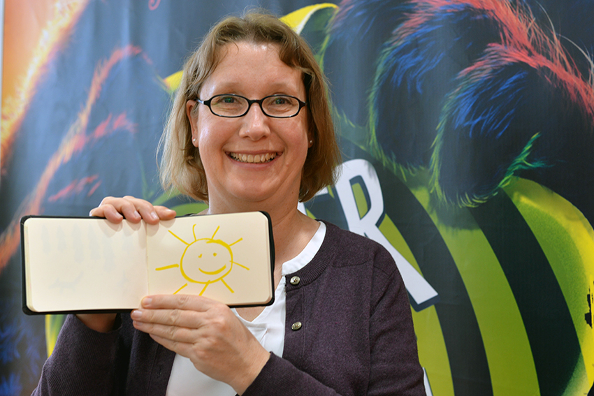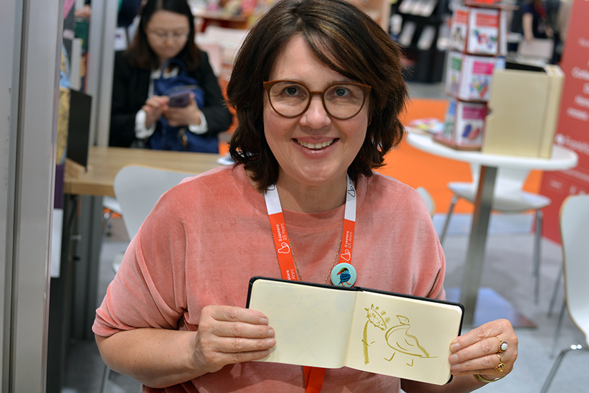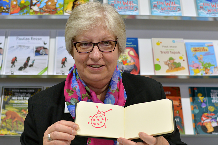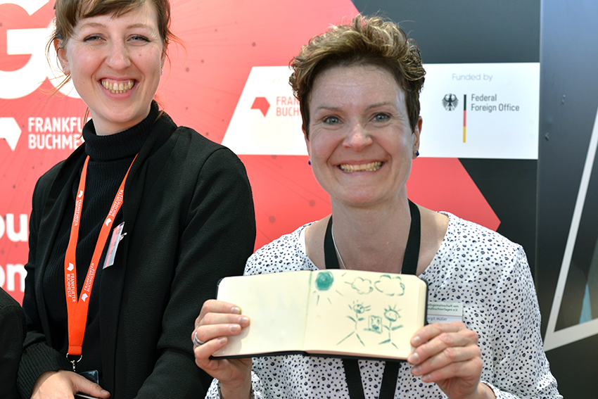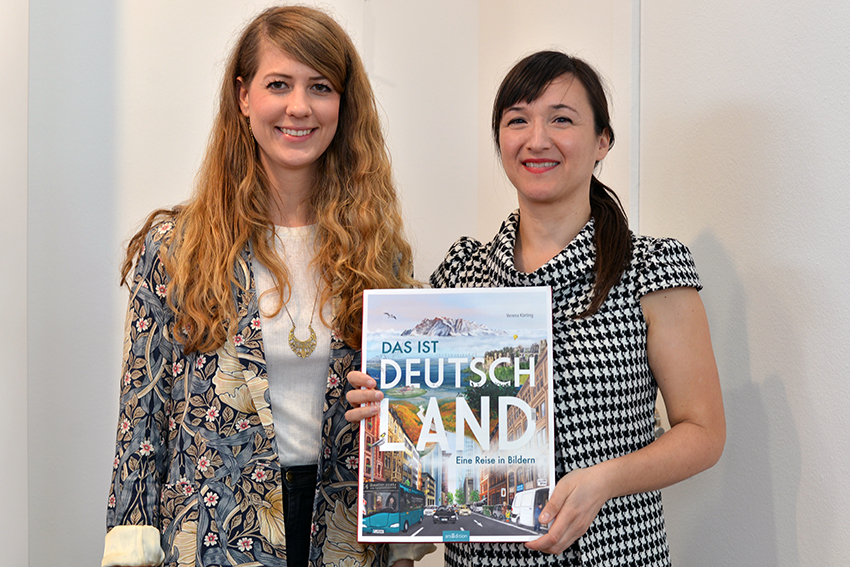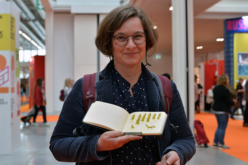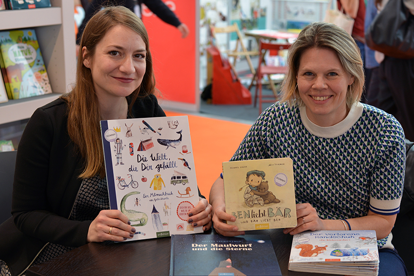 Am Stand von arsEdition treffen wir Verena Körting, die in Kürze die letzten Illustrationen für ihr großformatiges Bilderbuch Das ist Deutschland. Eine Reise in Bildern abgeben wird. Lektorin Viktoria Lach freut sich über die gute Zusammenarbeit: 21 Bilder aus allen Bundesländern werden es insgesamt, die zeigen sollen, wie man sich an einem Ort fühlt und die teilweise auch Wimmelbuch-Charakter haben. Viele Orte hat die Illustratorin dafür extra bereist.
