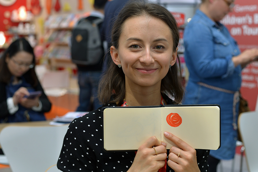 Denn alles in allem bleibt die Kinder- und Jugendbuchbranche inspirierend vielfältig und hat neben Rosa und Hellblau jede Menge weitere Farben zu bieten. Einige davon zeigen wir in unserer Bildergalerie: Danke an alle auf der Messe, die sich kurz Zeit genommen haben, um spontan eine Lieblingsfarbe aus unserem Pastellkreiden-Angebot auszuwählen, sie in einem Skizzenbuch sichtbar zu machen und sich damit ablichten zu lassen. So etwas geht vielleicht nur in Bologna. Oder ist ein solches Experiment auch im Trubel von Frankfurt vorstellbar? Wir wären bereit.