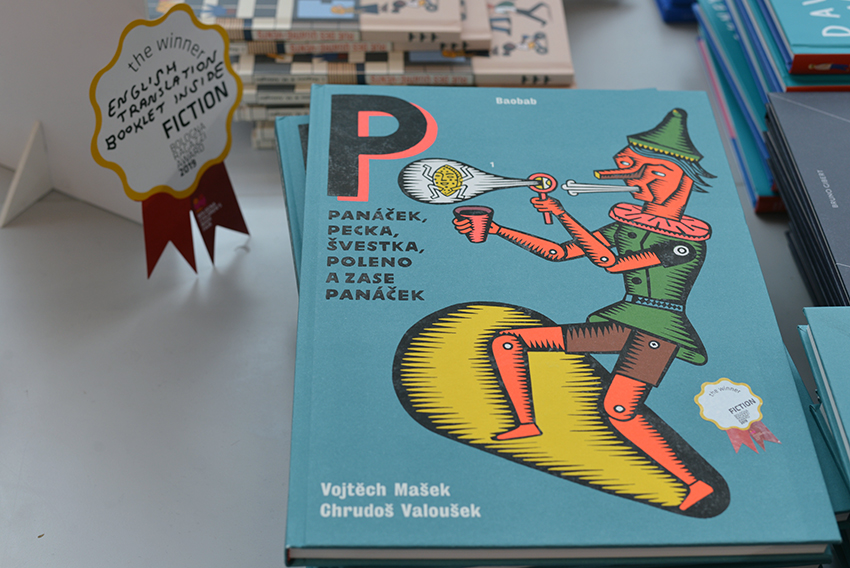 Der Gewinner in der Kategorie Fiction, Panáček, pecka, švestka, poleno a fase panáček von Vojtěch Mašek und Chrudoš Valoušek, war im Bookshop auf der Buchmesse am dritten Messetag bereits ausverkauft. Klar, Fachpublikum, Nerds, wen überrascht das?