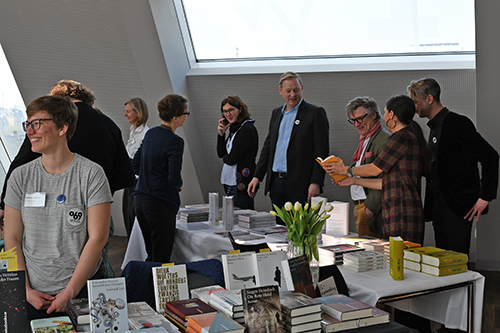 Insgesamt 25 Verlage haben auf zwei Ebenen in der Evangelischen Akademie ihre Stände aufgebaut; 17 aus Frankfurt und Offenbach – Axel Dielmann Verlag, Büchergilde Gutenberg, editionfaust, Societäts-Verlag, Frankfurter Verlagsanstalt, Gabal Verlag, Größenwahn-Verlag, gutleut verlag, Henrich Editionen, Mainbook, MeterMorphosen, Moritz Verlag, Schöffling & Co., S. Fischer Verlage, steinbach sprechende bücher, weissbooks.w, Westend Verlag; sowie acht Gastverlage – 360 Grad Verlag aus Schriesheim, Elster & Salis sowie Secession Verlag aus Zürich; Wallstein Verlag aus Göttingen und Guggolz Verlag, Matthes & Seitz, Querverlag und Reprodukt aus Berlin.